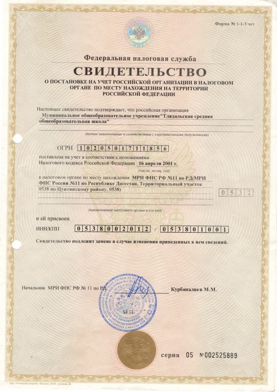 Полное наименование образовательной организации* Муниципальное казённое образовательное учреждение "Тлядальская средняя общеобразовательная школа"